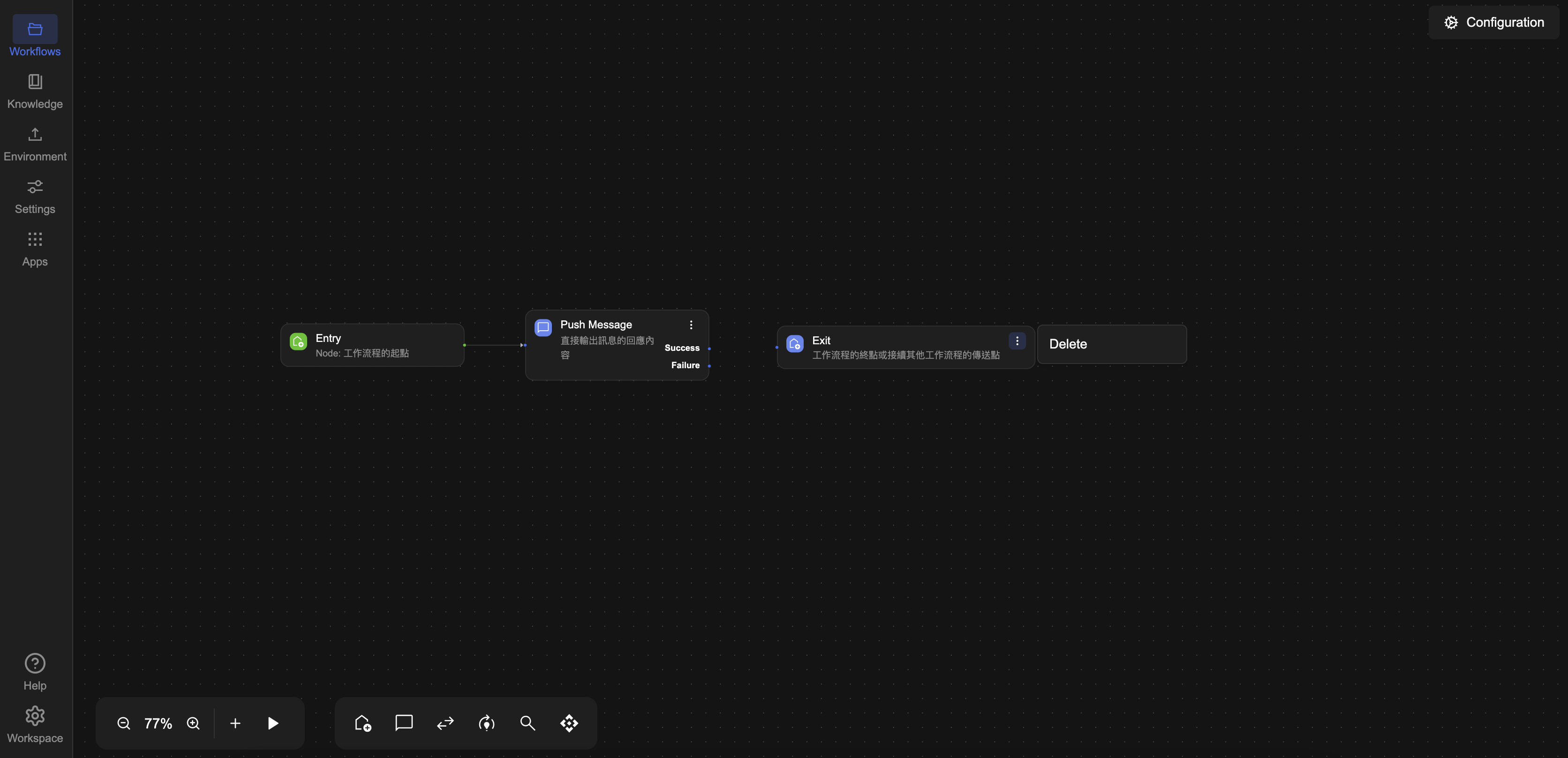 Exit 節點與Push Message 節點之間的連接線,按下鍵盤的Delete或Backspace鍵進行刪除。 - 也可以直接選擇
