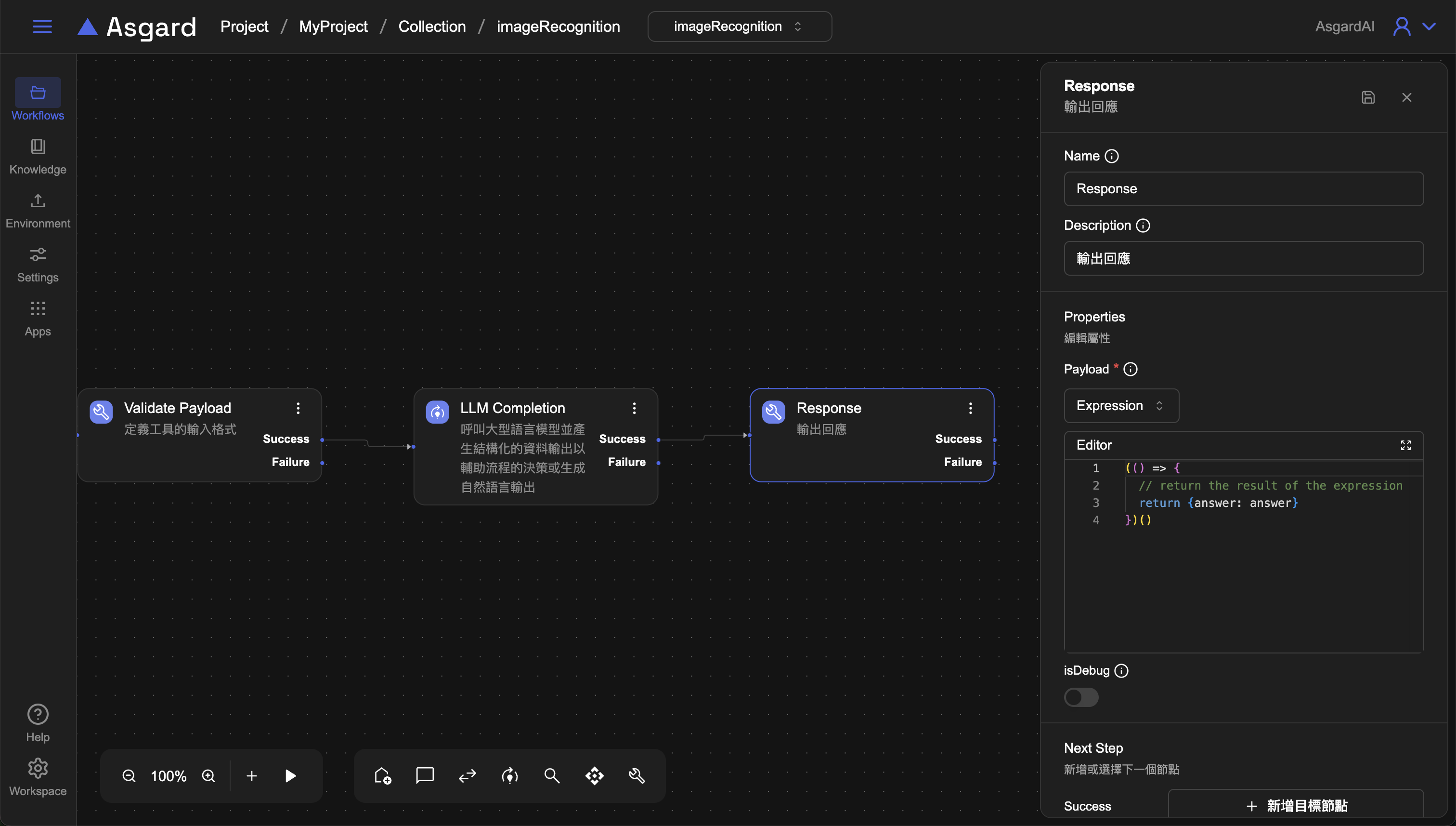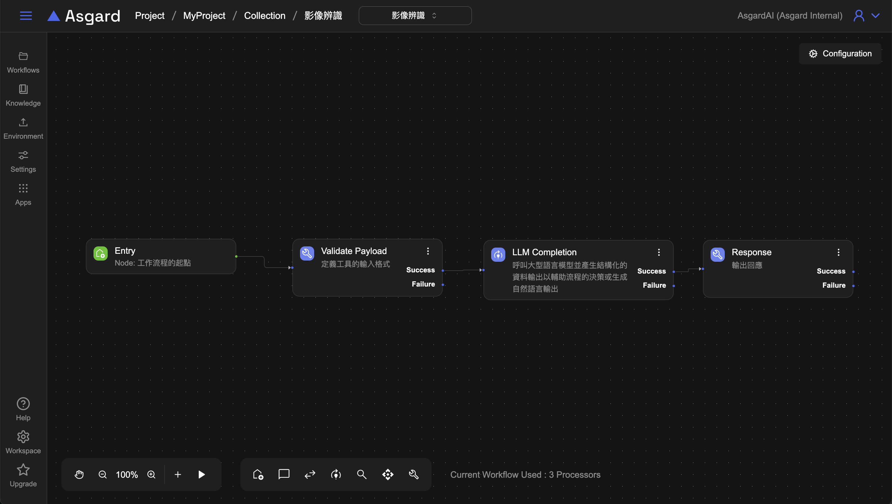 此範例會讓用戶上傳一張圖 片,並讓 AI 依據用戶的問題加上圖片去回答。整個範例會建立 3 個 Processor 來完成辨識影像的流程,最後藉由預覽來驗證功能。
