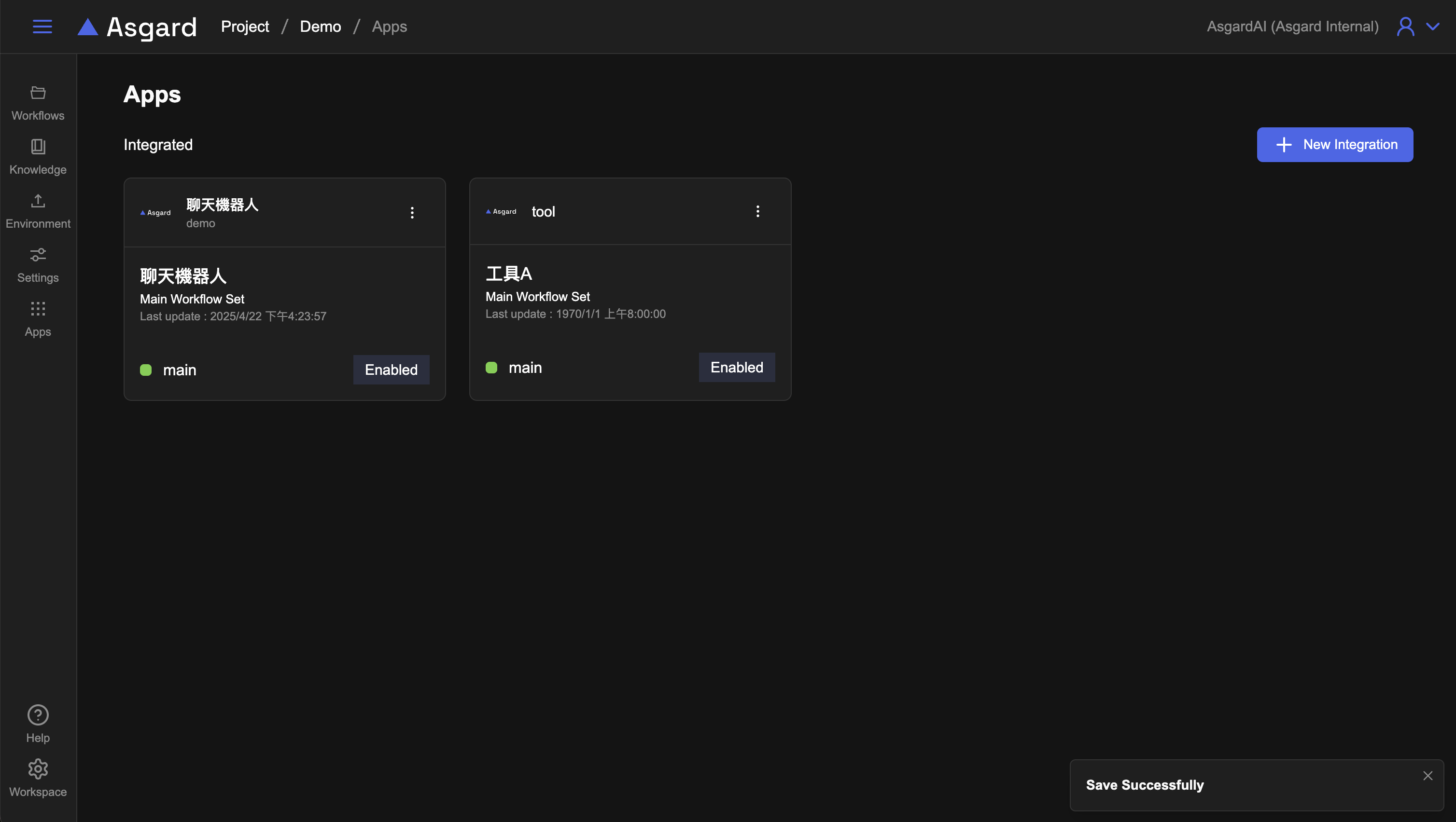 Asgard 提供了 Auth 驗證模式,只要 Integration 有開啟 Auth,首次進入 iFrame 頁面預覽就會跳出 API Key 驗證視窗。輸入正確的 Key 後,同一個瀏覽器就會記住狀態,下次再進入就不會再顯示。