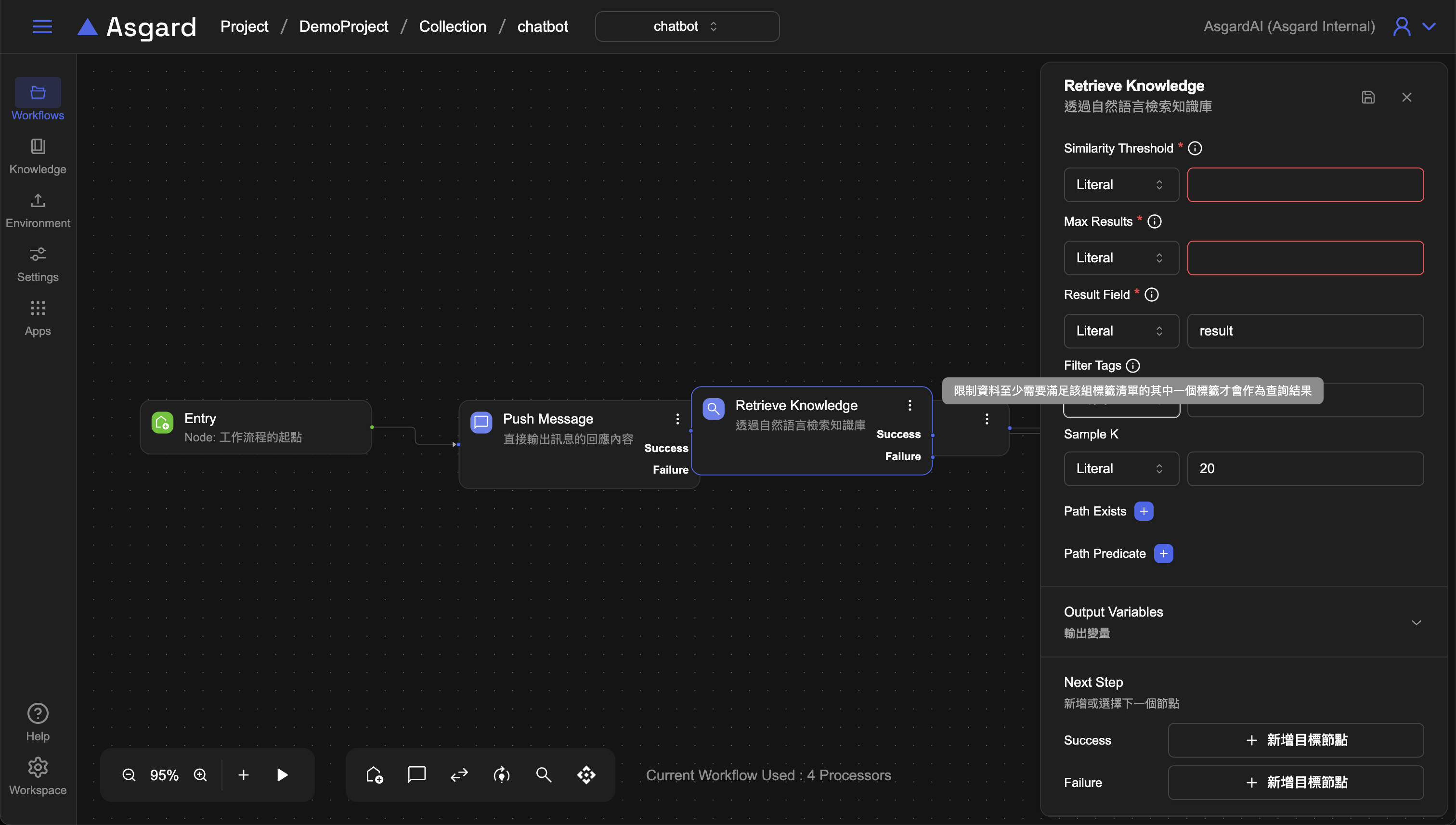 在知識庫內的左側功能列,點擊 Tag 可以檢視當前知識庫(例如 Demo)的所有標籤。您可以編輯或是刪除該標籤。