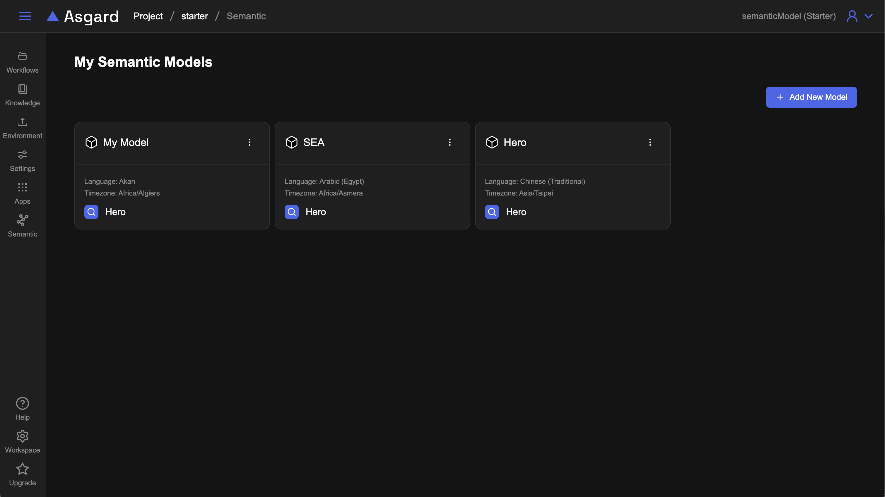 點擊左側功能列 Semantic 進到語意模型頁面,點擊「Add New Model」建立。