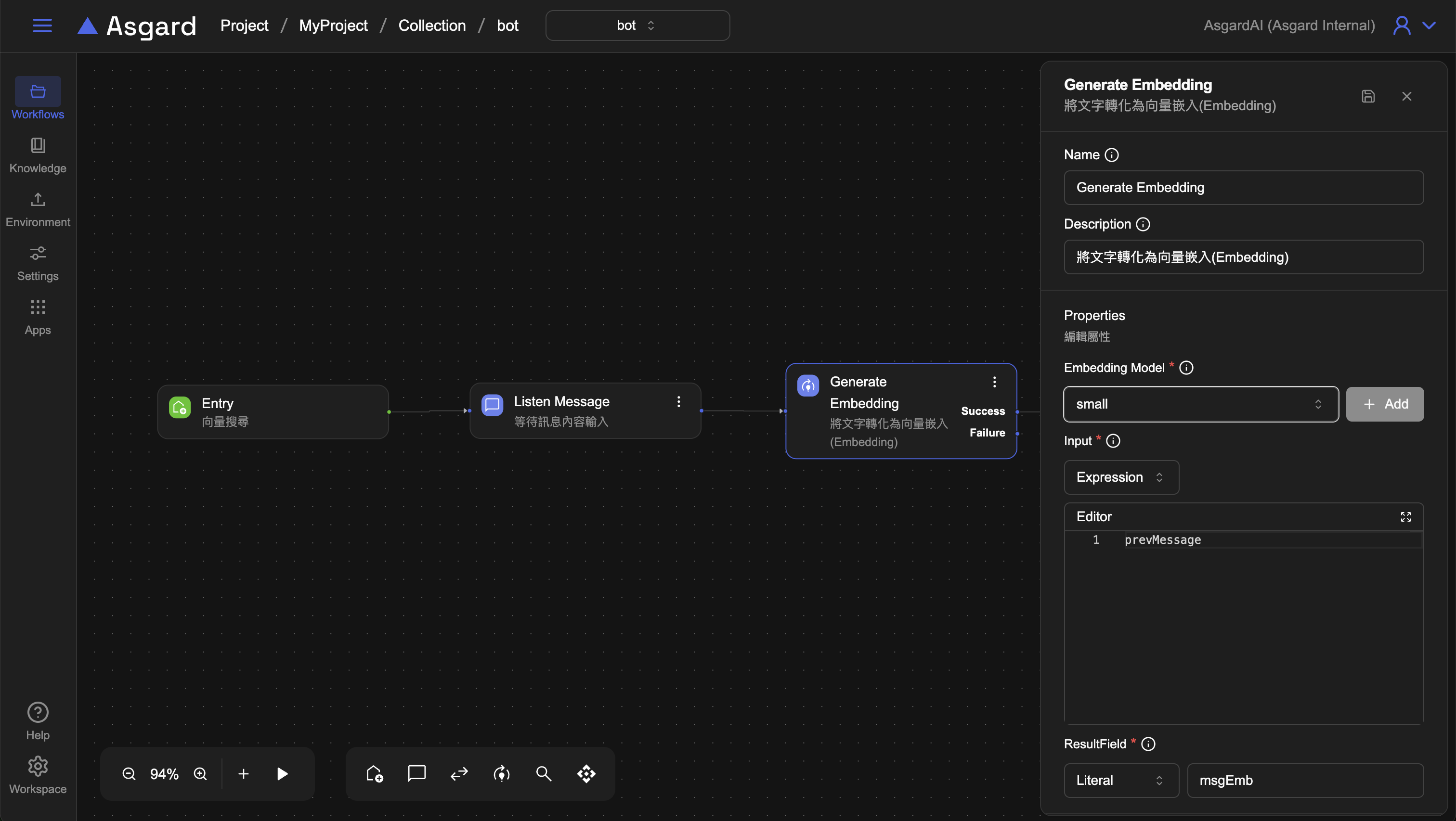 Generate Embedding將用戶輸入的文字轉化為向量嵌入(Embedding)。