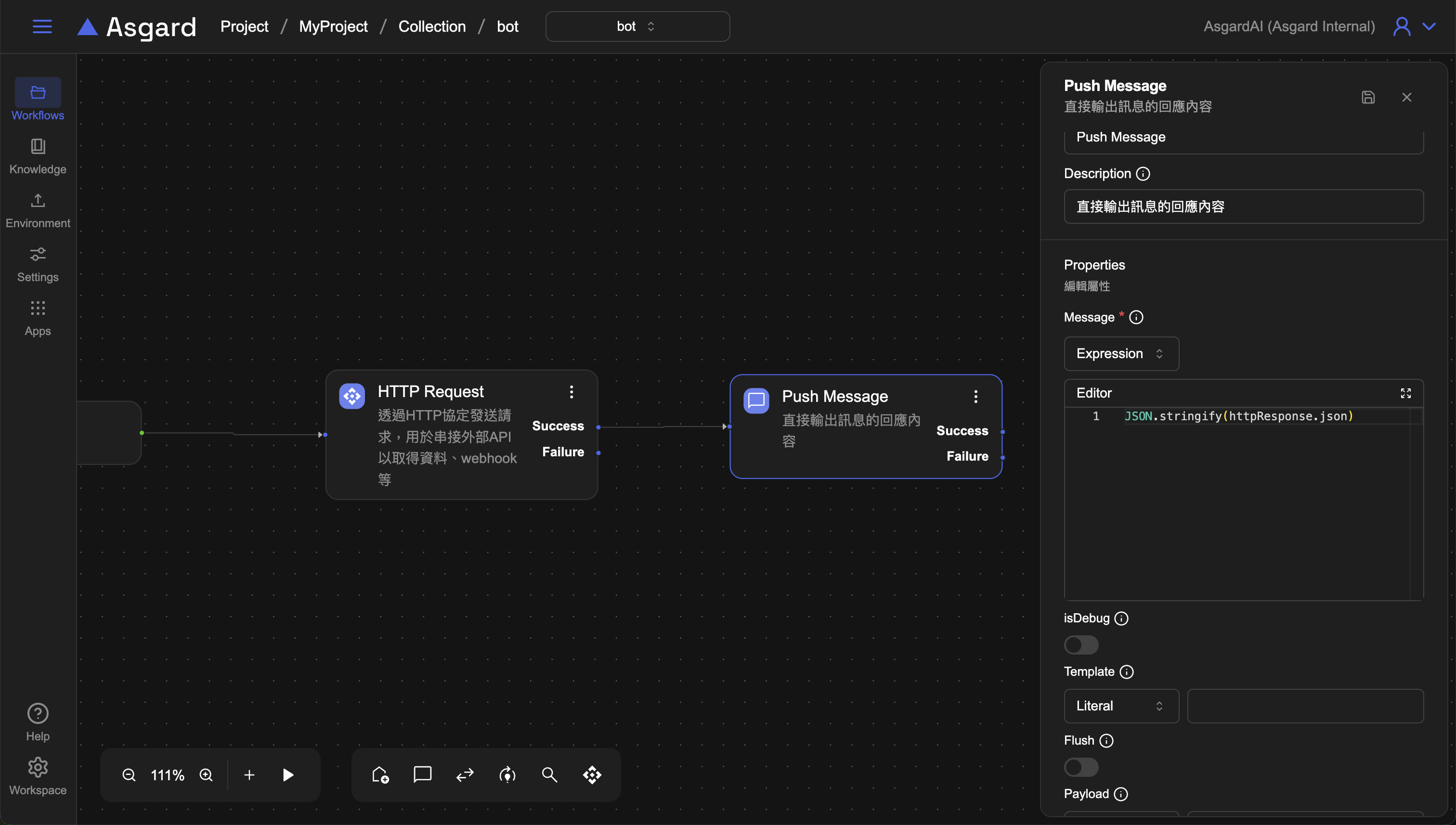 - 建立一個 Bot 類型的 Workflow