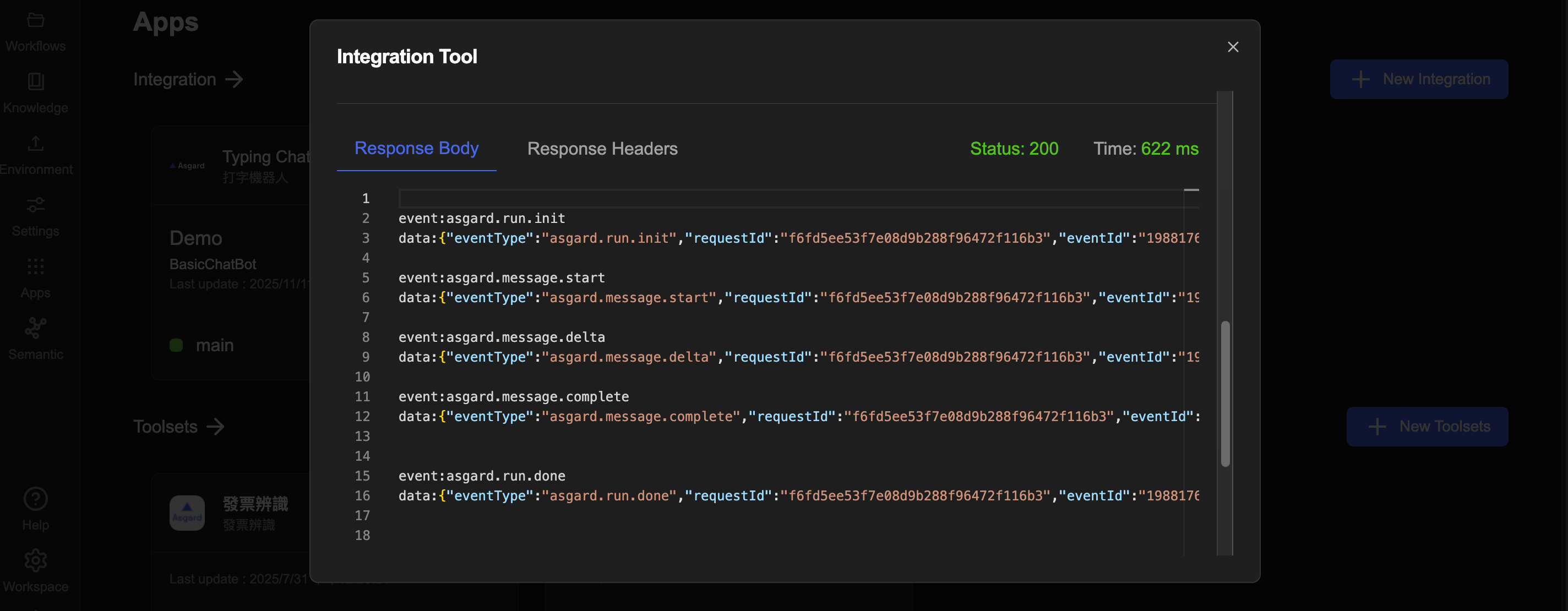 Asgard 的 Integration Tool 讓您直接在瀏覽器測試 Asgard API,不用再額外開 Postman。