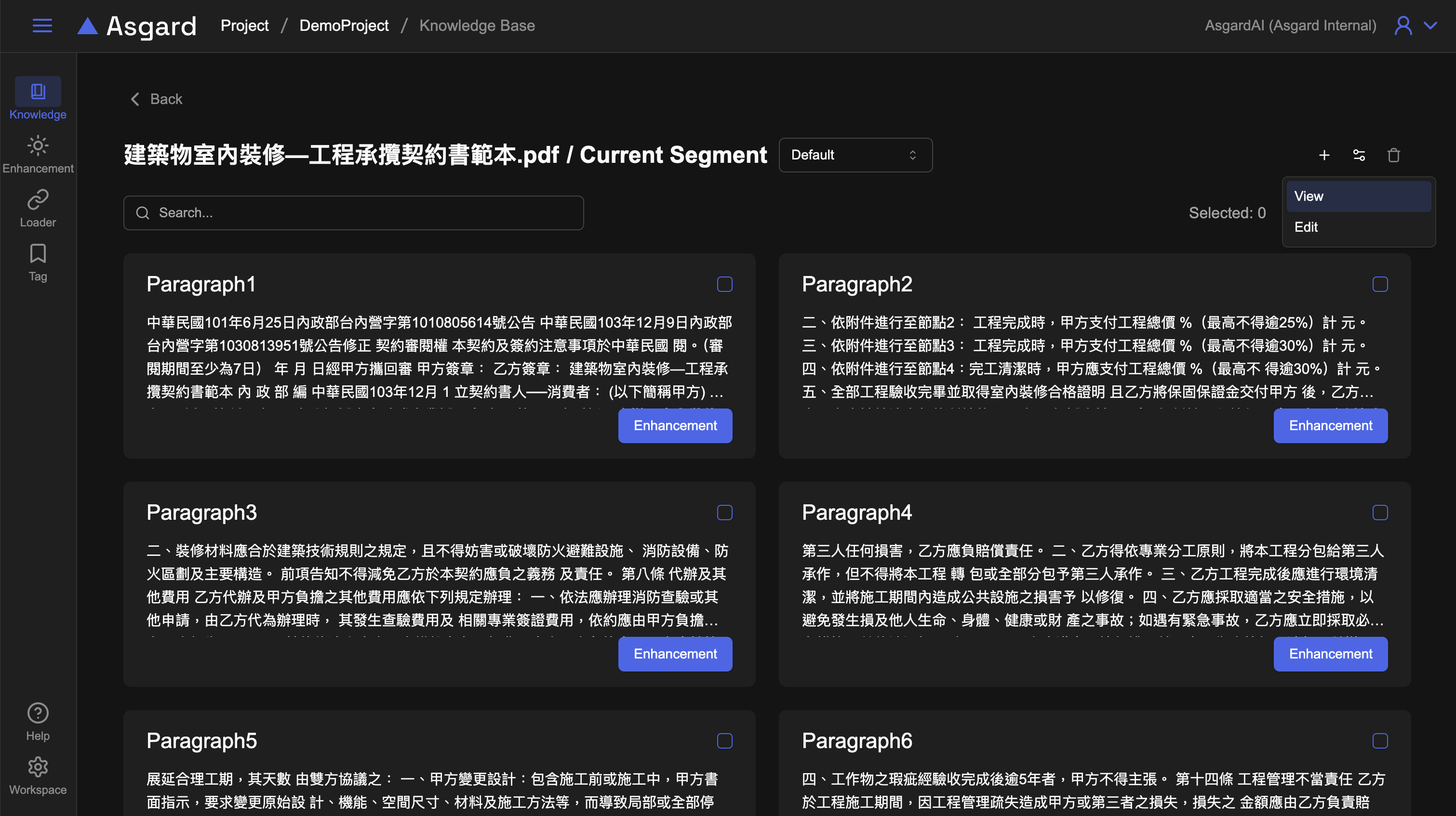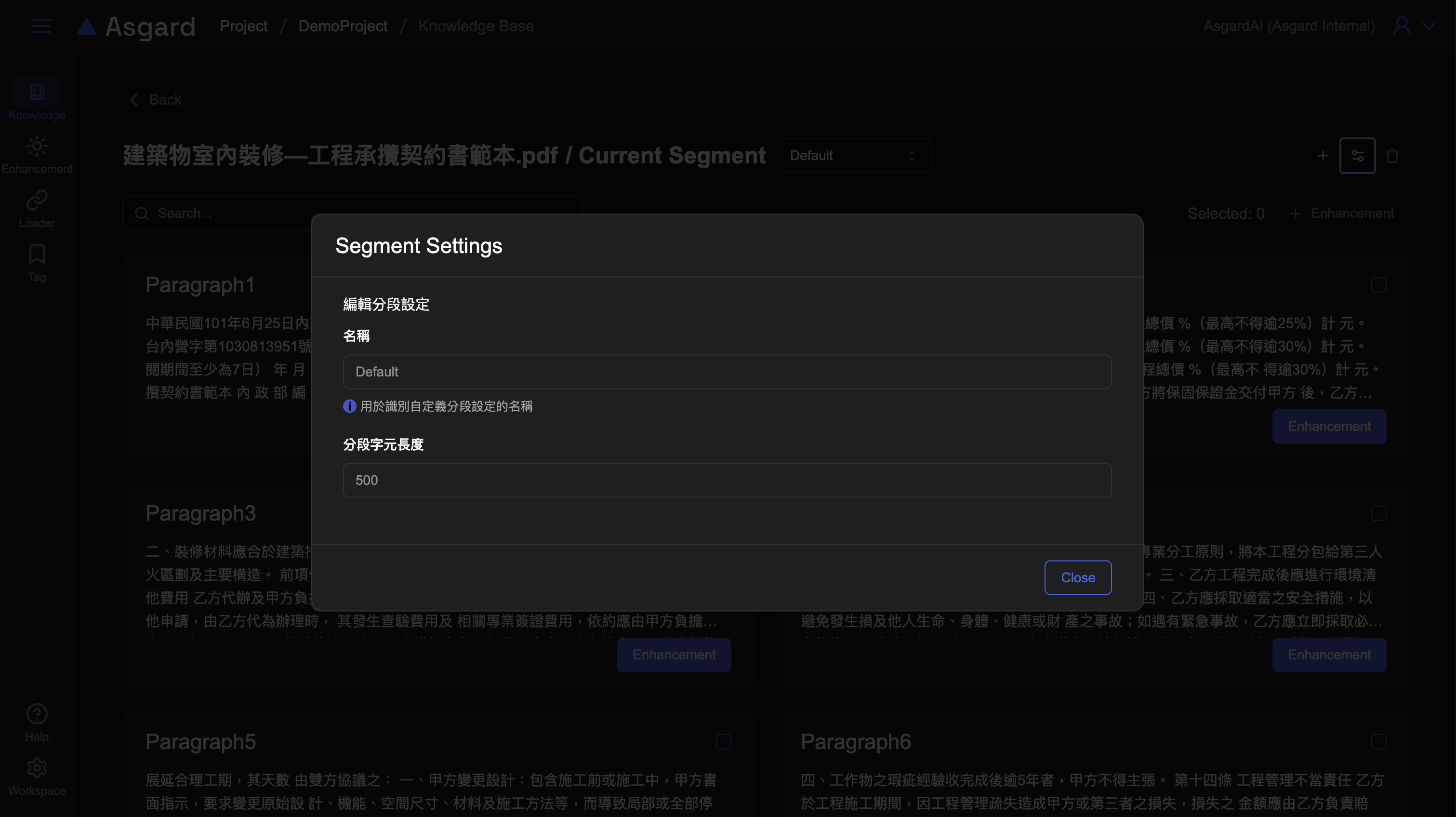 分段設定提供了彈性的知識處理方式,用戶可以使用預設的自動設定或調整不同的分段設定以找到最佳化的處理結果。