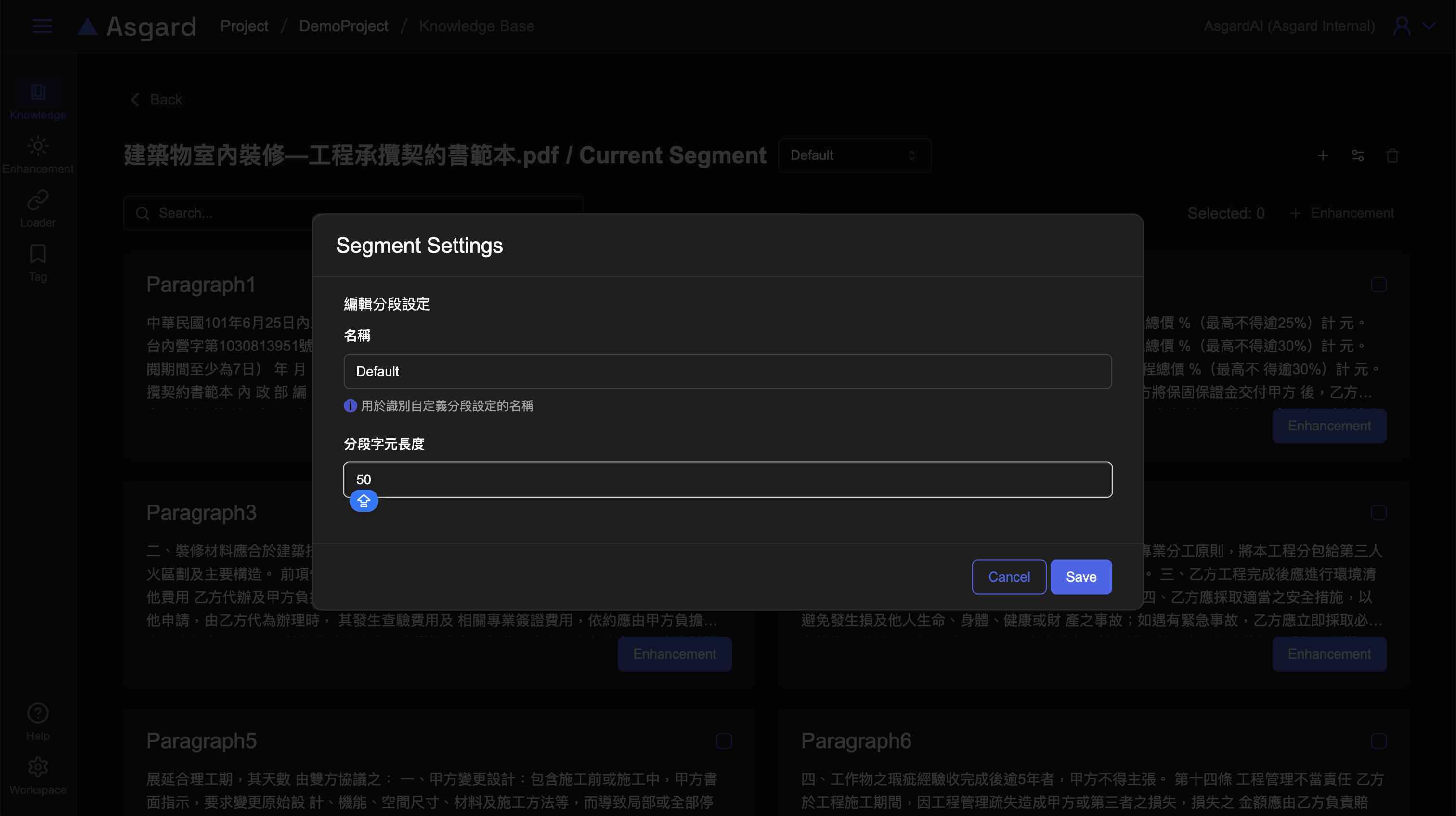 設定名稱與分段字元長度後儲存即可,此時新的分段為處理中,待處理完成才能檢視。